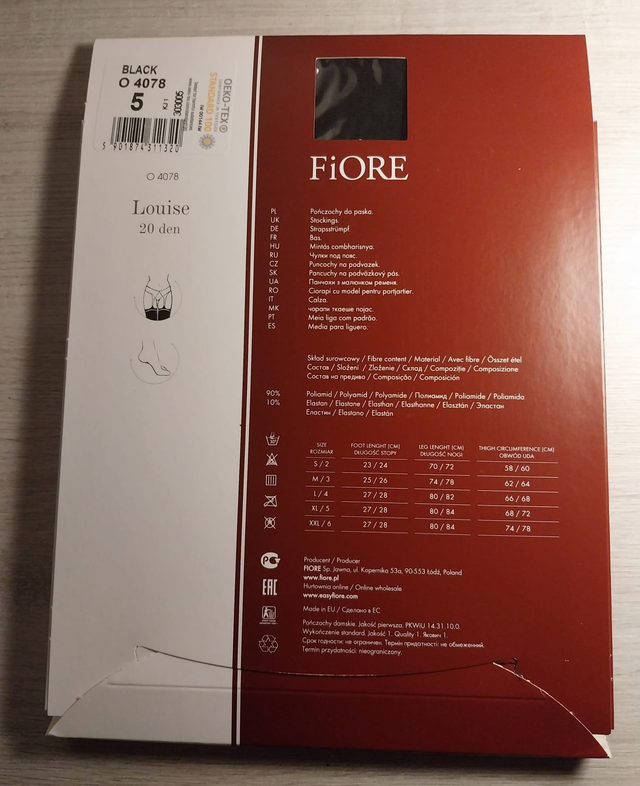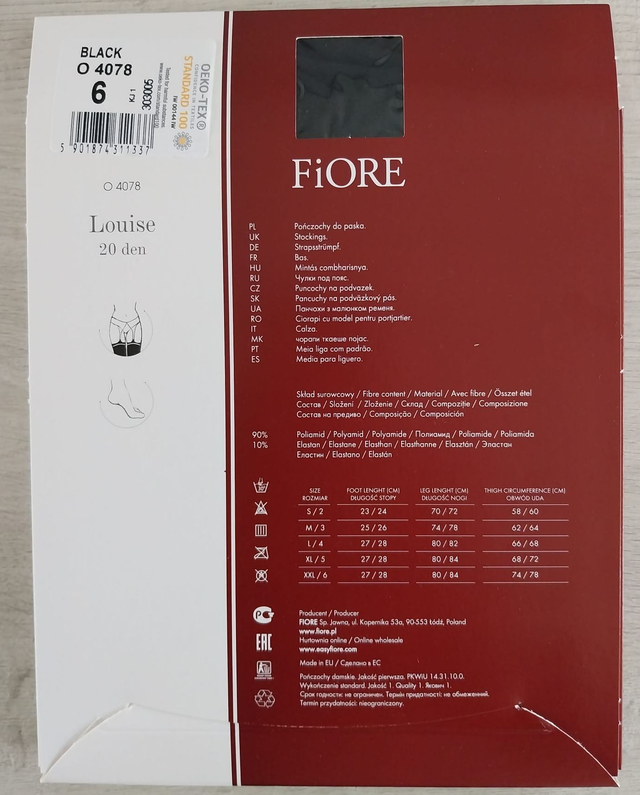 20DEN, Marque Fiore, taille 4, 5 ou 6
